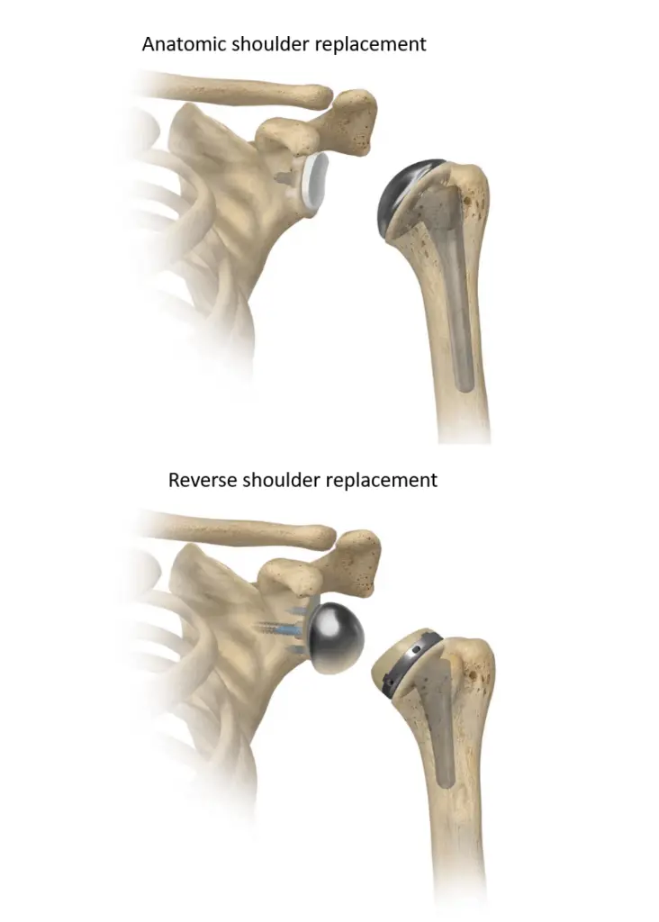 ✔️ Reverse Shoulder Replacement – The positions of the ball and socket are reversed, ideal for patients with severe arthritis combined with rotator cuff damage.
