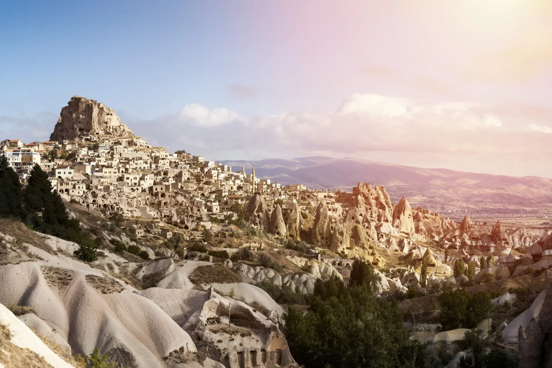 Visit landmarks like Uchisar Castle for panoramic views, the Goreme Open Air Museum with its stunning frescoes, and the serene Soganli Valley filled with Byzantine rock tombs. Marvel at the engineering of the Kaymakli and Derinkuyu Underground Cities, delve into the history of Selime and Keslik Monasteries, and take a peaceful hike through the scenic Ihlara Valley by the Melendiz River. Conclude your experience with stops at picturesque locations like Pigeon Valley and Mustafapasa, showcasing Ottoman and Greek architectural beauty.
